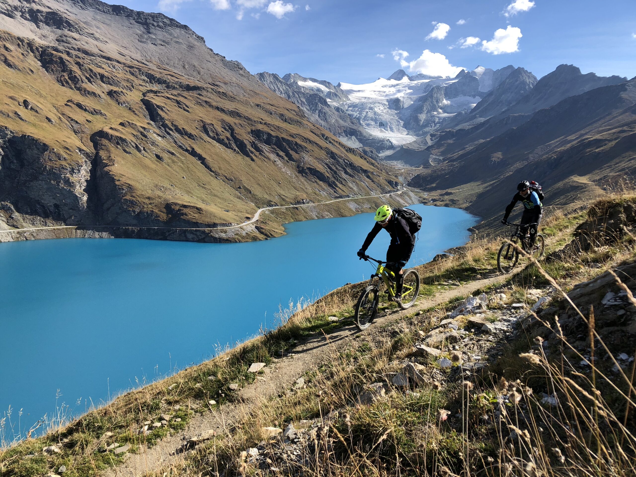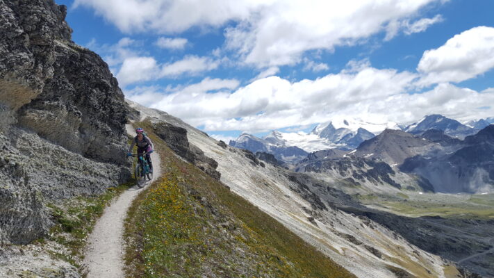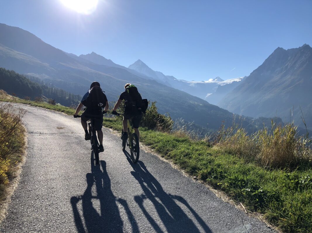 The very scenic valleys south of Sierre (Val d’Anniviers) and Sion (Val d’Hérens) with their beautiful little villages are located higher in altitude and therefore only rideable from late Spring till the first snowfalls in autumn.