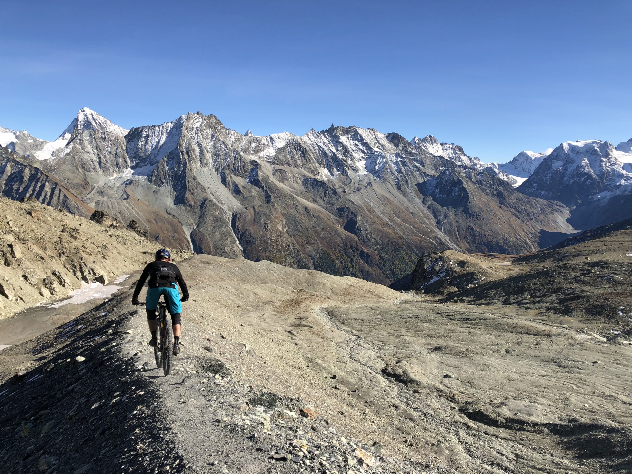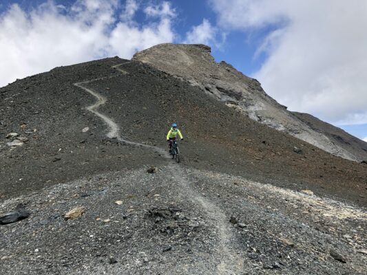 Val d’Hérens is a tranquil and beautiful valley with less bike specific infrastructure (apart from the signposted Grand Raid route). Most recommendable tours and descents are accessible by bus or cablecar and involve a longer pedal and hike-a-bike. If you are not an advanced rider, don’t bother going there as there are no easy trails that are not a fire road.
